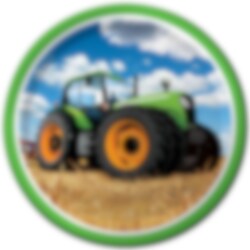 8 leuke papieren bordjes met een tractor motief om de taart op te serveren voor je tractor kinderfeestje. De bordjes hebben een diameter van ongeveer 23 cm.