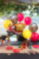 In de set zitten vijf latexballonnen van 30 cm, twee ronde folieballonnen van 45 cm, en een folieballon in de vorm van een betonwagen van 82 x 68,5 cm.