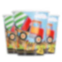 8 papieren bordjes met cool motief van een grote vrachtwagen die modder stort op een bouwplaats met verkeersborden. Deze bordjes zijn perfect om te serveren aan de persoon die geen genoeg kan krijgen van voertuigen.