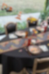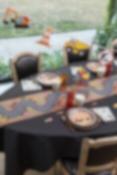 Kleurrijke tafellopers met patronen van werkvoertuigen rond een weg met veel kleine details. Leuk om de tafel mee te dekken voor je kinderfeestje met voertuig thema. De tafelloper is gemaakt van polyester en is ongeveer 30 cm breed en 5 meter lang.