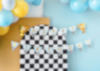 6 feesthoedjes in raceauto-thema met stoere motieven van de finishvlag bij autoraces. De hoeden zijn 16 cm hoog en worden op hun plaats gehouden met elastische banden.