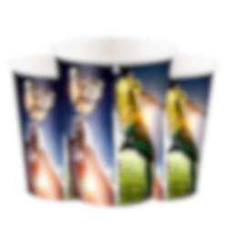 8 papieren bekers met een mooi voetbalafbeelding. De papieren bekers zijn 10 cm hoog en hebben een inhoud van 250 ml, perfect voor je voetbalthema kinderfeestje.