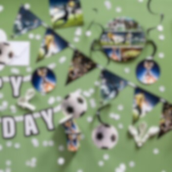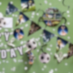 Versier je voetbalfeestje met deze decoratieve vlaggenlijn van papier met stoere voetbalafbeeldingen. Met een lengte van maar liefst 4 meter en 15 vlaggen creëert deze slinger een feestelijke sfeer.