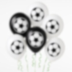 8 latex ballonnen in de kleuren zwart en wit en met afbeeldingen van voetballen. Een voor de hand liggende decoratie voor elk voetbalfeest. De ballonnen hebben een diameter van ongeveer 30 cm wanneer ze zijn opgeblazen en kunnen het gemakkelijkst worden opgeblazen met helium.