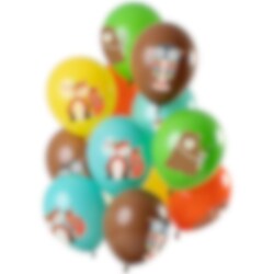 12 stuks ballonnen in leuke kleuren en met schattige motieven van bosdieren. Een perfecte decoratie voor een themafeest met Woodland Animals. De ballonnen hebben een opgeblazen diameter van ongeveer 30 cm en kunnen worden opgeblazen met helium en gewone lucht.