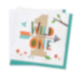 16 servetten in mooie kleuren met motieven van de tekst "Wild One" en het cijfer 1 op de achtergrond uit het thema Woodland Animals. De servetten hebben 2 lagen en zijn uitgevouwen 33 x 33 cm.