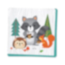 16 kleine servetten in leuke kleuren met aan beide kanten motieven van schattige bosdieren. Passend om voor het kinderfeestje op tafel te zetten met Woodland Animals als thema. De servetten hebben 2 lagen en zijn uitgevouwen 25 x 25 cm.