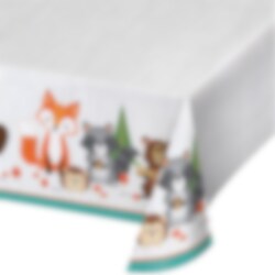 Groot plastic tafelkleed in mooie kleuren met een leuk motief van de dieren en het bos uit het Woodland Animals thema. Een perfecte aanvulling op je dieren themafeest. Het tafelkleed heeft een afmeting van 137 x 259 cm.
