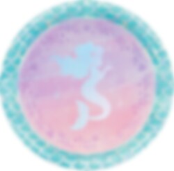 8 mooie papieren bordjes met een sierlijk motief van een zeemeermin in zilverfolie. De bordjes hebben een diameter van ongeveer 23 cm.