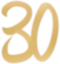 4 stuks decoraties van het getal '30' gemaakt van goudgefolieerd karton. Deze decoraties hebben veel toepassingen en kunnen worden gecombineerd met andere dingen in het 30-jarig thema. De decoraties zijn 18 x 20 cm groot.