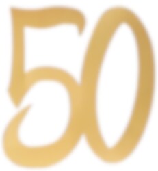 4 stuks decoraties van het getal '50' gemaakt van goudgefolieerd karton. Deze decoraties hebben veel toepassingen en kunnen worden gecombineerd met andere dingen in het 50-jarig thema. De decoraties zijn 18 x 20 cm groot.
