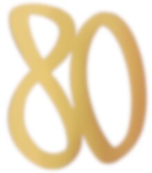 4 stuks decoraties van het getal '80' gemaakt van goudgefolieerd karton. Deze decoraties hebben veel toepassingen en kunnen worden gecombineerd met andere dingen in het 80-jarig thema. De decoraties zijn 18 x 20 cm groot.