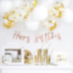 ✔️ 1 roségouden folieslinger met de tekst Happy Birthday