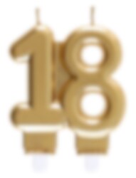 Taartkaars in goud, elegant gevormd als het getal '18'. De taartkaars heeft een afmeting van 7,5 x 9 cm.