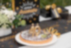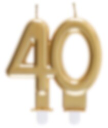 Taartkaars in goud, elegant gevormd als het getal '40'. De taartkaars heeft een afmeting van 7,5 x 9 cm.