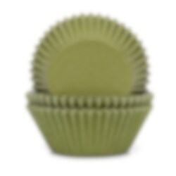 50 olijfgroene muffinvormpjes van de fabrikant House of Marie, perfect om te gebruiken bij het bakken van muffins of broodjes. De muffinvormpjes hebben een bodemdiameter van 5 cm. Gebruik voor de beste stabiliteit een muffinpan.