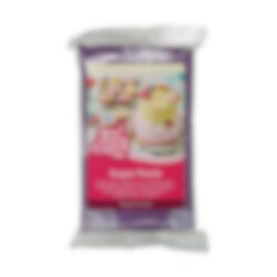 De Royal Purple rolfondant heeft een mooie donkerpaarse kleur en een heerlijke vanillesmaak. Perfect om een taart mee te bekleden en om vormpjes uit te snijden. Voor gebruik goed doorkneden en uitrollen op een dun laagje poedersuiker. Je kunt de rolfondant ook gebruiken om te modelleren of om verschillende vormen en ontwerpen te maken. Ook geschikt om te kleuren met kleurstof. Laat de fondant na het kleuren (afgedekt) een uur rusten voor het beste resultaat. Kneed de rolfondant opnieuw voor verdere verwerking. Om een ronde taart met een diameter van 20 cm te bekleden, heb je ongeveer 500 g fondant nodig.