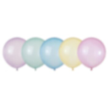 25 latex ballonnen in hele mooie pastelkleuren. De ballonnen hebben een diameter van ongeveer 48 cm wanneer ze zijn opgeblazen en ze kunnen worden opgeblazen met gewone lucht of helium. Let op! Dat deze ballonnen donker van kleur zijn als je ze krijgt en dat ze pas licht worden als je ze opblaast!