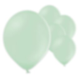 50 stuks mooie latex ballonnen in een pastel groene kleur om te versieren bij feestelijke gelegenheden. De ballonnen hebben een opgeblazen diameter van ongeveer 30 cm en kunnen gevuld worden met lucht of helium.