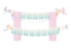 De meegeleverde backdrop in zachte pasteltinten zorgt voor een magisch effect en maakt deze slinger een prachtige decoratie voor een zeemeerminnenfeestje.
