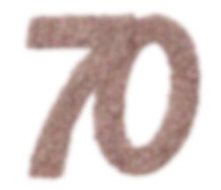 6 glinsterende grote confetti in roségoud om te decoreren op het 70-jarig feest. De confetti heeft de vorm van het getal '70' en is 6 x 6 cm groot. Ze zijn gemaakt van papier.