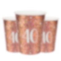 6 stuks mooie en praktische wegwerpglazen in champagnestijl. De plastic glazen zijn leuk om zowel de tafel mee te dekken als om mee te mengen met je gasten op het 40e verjaardagsfeest. De glazen hebben een inhoud van 14 cl en staan op een voet van roségoud met het getal '40' bovenaan gedrukt.