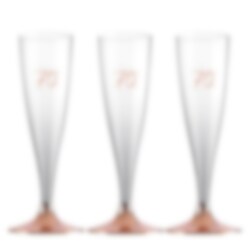 6 stuks mooie en praktische wegwerpglazen in champagnestijl. De plastic glazen zijn leuk om zowel de tafel mee te dekken als om mee te mengen met je gasten op het 70e verjaardagsfeest. De glazen hebben een inhoud van 14 cl en staan op een voet van roségoud met het getal '70' bovenaan gedrukt.