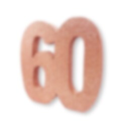 Zeer mooie en indrukwekkende tafeldecoratie die schittert in roségoud. De decoratie is gevormd als het getal '60' en wordt het middelpunt van je gedekte tafel voor de 60ste verjaardag. De decoratie is 19,5 x 20 cm groot.