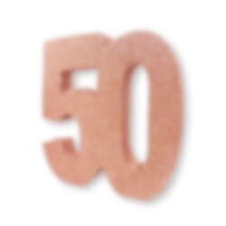 Zeer mooie en indrukwekkende tafeldecoratie die schittert in roségoud. De decoratie is gevormd als het getal '50' en wordt het middelpunt van je gedekte tafel voor de 50ste verjaardag. De decoratie is 19,5 x 20 cm groot.