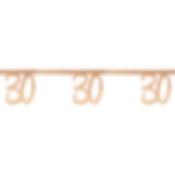 Decoratieve slinger van karton in glanzende roségoudfolie met het getal '30'. De slinger is een uitstekende decoratie voor je 30-jarige feest. Elk getal is 18 x 23 cm groot en de slinger zelf is 250 cm lang.
