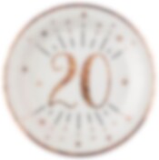Roségoudglitter bordjes 20 jaar 10 stuks