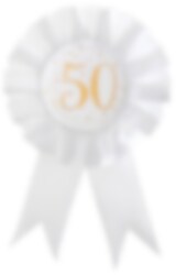Mooie rozet in wit en goud met het getal 50 erop gedrukt. De rozet kan zowel als decoratief accessoire in bijvoorbeeld bloemstukken worden gebruikt, als door jou gedragen worden op je 50ste verjaardag. De rozet zijn 8 cm in diameter en 15 cm hoog.