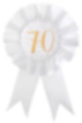Mooie rozet in wit en goud met het getal 70 erop gedrukt. De rozet kan zowel als decoratief accessoire in bijvoorbeeld bloemstukken worden gebruikt, als door jou gedragen worden op je 70ste verjaardag. De rozet zijn 8 cm in diameter en 15 cm hoog.