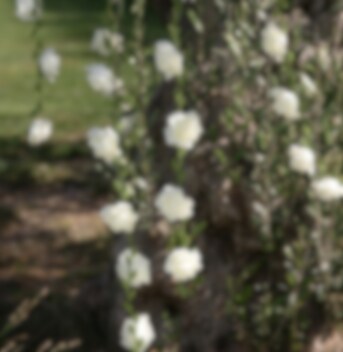 Een lieve slinger van kunststof met witte rozen die op een groene tak zitten, met kleine groene blaadjes erop. Mooi om te decoreren voor de doop, bruiloft, babyshower of andere feestelijke gelegenheden.