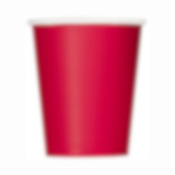 8 rode papieren bekers. De bekers zijn gemaakt van milieuvriendelijk karton, zijn 10 cm hoog en hebben een inhoud van 266 ml.