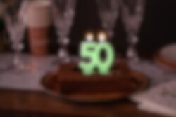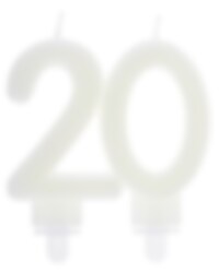 Taartkaars die elegant schijnt in het donker in de vorm van het getal '20'. De taartkaars heeft een afmeting van 7,5 x 9 cm.