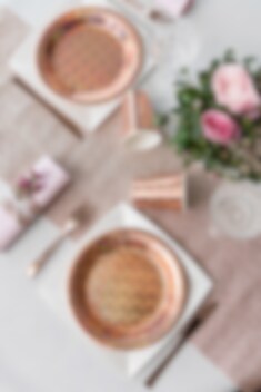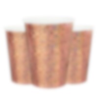 10 stuks. mooie holografische papieren bordjes die glinsteren en schitteren in roségoud. De bordjes zijn ongeveer 22.5 cm groot.