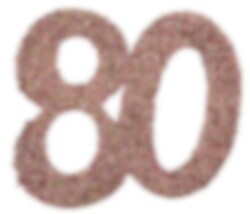 6 glinsterende grote confetti in roségoud om te decoreren op het 80-jarig feest. De confetti heeft de vorm van het getal '80' en is 6 x 6 cm groot. Ze zijn gemaakt van papier.