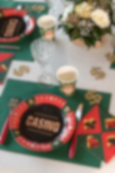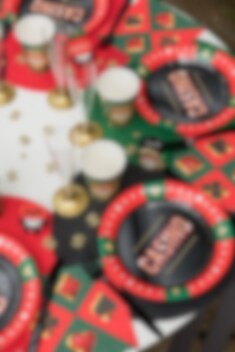 10 papieren borden met een afbeelding van een spelmarker en met de tekst "Casino" in het midden. Ze zijn perfect als je een themafeest of een pokeravond thuis met je vrienden wilt organiseren. Ze zijn ook geschikt als je een James Bond themafeest wilt organiseren.