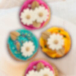 Decoreer gebak elegant en eenvoudig met deze prachtige, eetbare ouweldecoraties. De verpakking bevat witte bloemen en stijlvolle gouden blaadjes die cupcakes, taarten en andere lekkernijen snel in kleine kunstwerkjes veranderen. Perfect voor verjaardagen, bruiloften en andere feestelijke gelegenheden waarbij je met minimale moeite indruk wilt maken!