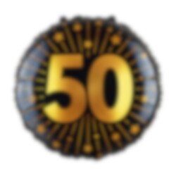 Vier de 50e verjaardag in stijl. Deze ronde folieballon in zwart en goud met groot “50”-opdruk is een echte eyecatcher op het feest. De ballon is ca. 46 cm en kan worden gevuld met helium om te zweven of met lucht om op te hangen of in decoraties te bevestigen.