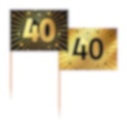 Vier de 40e verjaardag in stijl. Deze feestelijke party picks in zwart en goud zijn perfect als decoratie voor cupcakes, hapjes, taart of andere lekkernijen op het buffet.