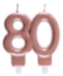 Taartkaars in roségoud, elegant gevormd als het getal '80'. De taartkaars heeft een afmeting van 7,5 x 9 cm.