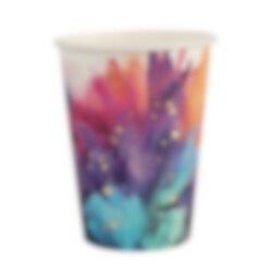 Kleurrijke bekers die perfect zijn voor een kinderfeestje, feest of andere vieringen waarbij de tafeldecoratie eruit mag springen. Het levendige patroon in heldere tinten roze, paars, blauw en oranje creëert een expressieve indruk, terwijl de glanzende gouden details een extra elegante touch geven.