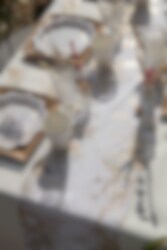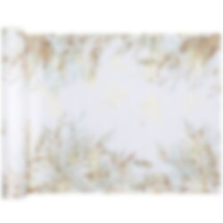 Mooie tafelloper met verfijnde motieven van neutraal bladwerk en goudgefolieerde details in reliëf. Dek de tafel mooi met deze voor een fijnere gelegenheid of feestelijke gebeurtenis.