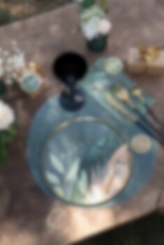 10 exclusieve papieren bordjes met bladmotieven in groene kleurtinten en goud, en de tekst 'Happy Birthday to you!' in goud. De borden hebben een diameter van 22,5 cm.
