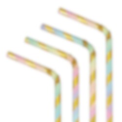 Geef elk drankje een feestelijk tintje met deze papieren rietjes in pastelkleuren met glanzend goudfolie. Een kleurrijk detail dat perfect is voor een verjaardag, babyshower of feestje. De rietjes zijn buigzaam, gemaakt van papier en zijn 19,5 cm lang.