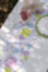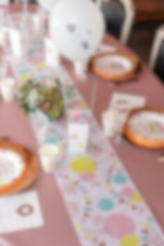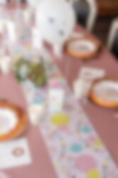 Prachtige tafelloper om te hebben voor de verjaardagsviering. De tafelloper hebben verschillende kleurrijke motieven van ballonnen en slingers en het beste van alles zijn alle details in roségoud die een gevoel van stijl toevoegen.
