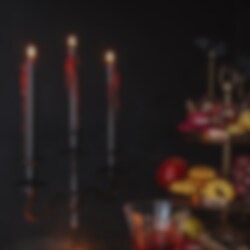 Deze zwarte kaarsen lijken in eerste instantie elegant, totdat je ze aansteekt. Dan begint rode was langs de kaars te druipen alsof het bloed is, wat zorgt voor een griezelig en dramatisch effect. Ze zijn perfect voor een halloween-diner, een vampierenfeest of als gotisch detail op tafel.