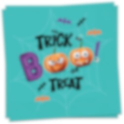 20 servetten in een mooie turquoise kleur met coole Halloween motieven en de tekst ''Trick or Treat''. De servetten hebben 3 lagen en zijn uitgevouwen 33 x 33 cm.
